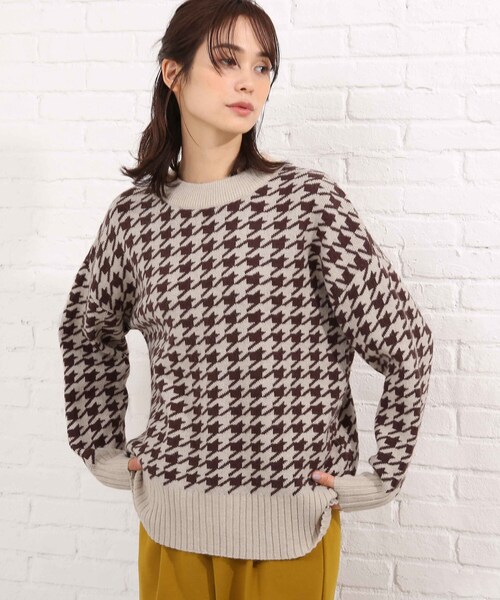 【デザイン】柄がアクセントにコーディネートのポイントになるデザインニット。程よく身体から離れるシルエットが、体型を拾いにくく、ヒップ周りが隠れる丈で安心感があります。一枚でサマになる今年らしい柄でスタイルの主役に。すっきりシルエットのパンツはもちろん、落ち感あるスカートでミックスコーデもおすすめです。【生地感】目が詰まったすっきりした編み地で、もちっとしたタッチと適度な厚みを持ちながらも、軽い着心地が魅力のニット素材を使用しています。【スタッフ着用コメント】レトロな雰囲気漂う千鳥格子とヘリンボーン柄のデザインなので、着るだけでこなれ感が出せるニットです。程よい丈感でボトムは選ばないことはもちろん、アームホールがゆるすぎないので、どんなアウターも羽織れます。またジャンスカのインナーなどにも差し込みやすいです。モデル情報:身長167cm B79 W59 H87 着用サイズ:00(FREE)店舗へのお問い合わせ商品番号:C62-13336●製品寸法:00(FREE):着丈61cm B112cm 袖丈45cm 肩幅58cm備考: