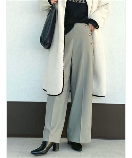 フロントに施したゴールドボタンがアクセントのマリンパンツ。 ハイウエストに程よい裾フレアで美脚と脚長効果も狙えます。 丈夫でシワになりにくいTR素材を使用し、お家でケアできるのも魅力的。 トレンドのくすみカラーを取り揃え、爽やかな着映えコーデに仕上がるのも嬉しいポイントです。