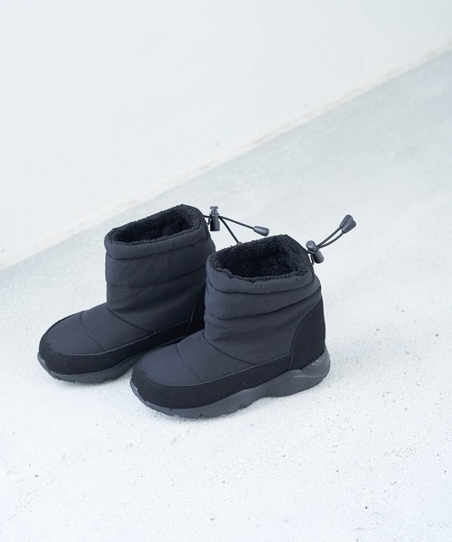 冬の足元を見た目から暖かく。トレンド感たっぷりに仕上がる一足。【素材感】 ・表地は撥水加工を施した生地を使用。 ・内側は冬に嬉しい暖かい起毛素材。 【デザイン・シルエット】 ・ボリュームたっぷりで暖かいキルトブーツ。 ・バランスの取りやすいショート丈。 ・履き口はドローコードで調節可能。 【カラー】 ・ブラック、ベージュの合わせやすい2色をラインナップ。 【スタイリングポイント】 ・スキニーパンツをインしてスポーティーに。 ・レギンス×ボリュームソックスとのコーディネートもおすすめ。 ※撮影時の光、お使いのモニター環境によって色の見え方が違う場合がございます。