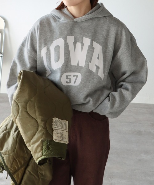 古着感もあるカレッジロゴプリントを載せた裏起毛プルオーバーパーカー。 90'sなどのUSA古着のような広い身幅と袖幅が今のトレンドにぴったりなサイズ感に仕上がっております。 マーメイドスカートやレザーブーツなど女性らしいコーデにカジュアルダウンしたり、メンズにもおすすめなユニセックス商品なので、シミラールックなどにもおすすめです。 【COURO/コウロ】 トレンドかつベーシックを中心に、小物や雑貨、インテリアまで含めたライフスタイルのイメージが湧くようなアイテムを展開。