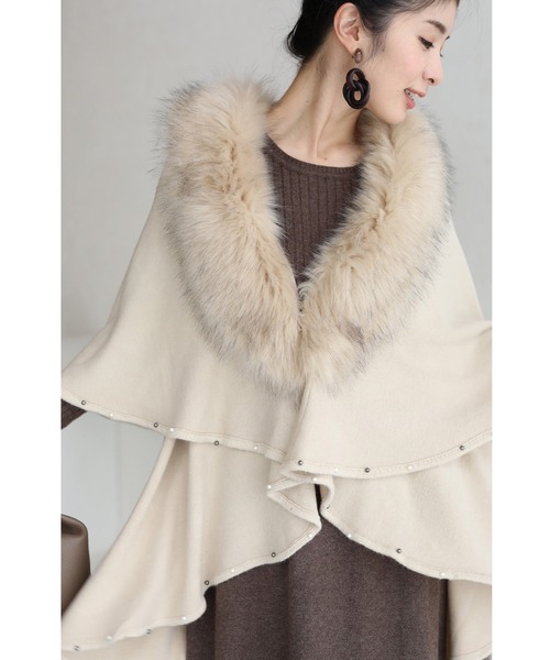 【FRENCH PAVE】「リュクスなフェイクファーのケープカーディガン 羽織り アウター」■ボリュームファーで顔周り華やぐ首元のファーが顔周りを華やかにしてくれます。ボリュームたっぷりで小顔効果も◎■柔らかなニット素材伸縮性のある柔らかなニット素材で着心地抜群。ドレープの揺れを強調するパールの装飾が女性らしい一枚です。■二重ショール構造ショールが二重になった珍しいデザインです。お尻や太ももが隠れる丈感でさりげなく体型カバーが叶います。【ショップのお気に入り登録】新作アイテムやセール通知、お得な情報を受取ることができます。ぜひご登録ください。 【商品のお気に入り登録】気になるアイテムは《お気に入り登録》がオススメ!入荷情報やクーポン情報、再入荷通知やラスト1点の通知などお得な情報を受け取ることができます。≪CAWAII(カワイイ)/ FRENCH PAVE(フレンチパヴェ)≫「他には無いカワイイが見つかる」「非日常を日常に」「自分の人生は自分で描こう」をコンセプトに展開している芦屋発のレディースブランド。流行にとらわれ過ぎない独自の世界観で、他にはないような個性的なアイテムを数多く取り揃えております。10代、20代、30代、40代、50代の幅広い年齢層にご利用いただいております。※お使いのディスプレイにより色味が異なって見える場合がございます。