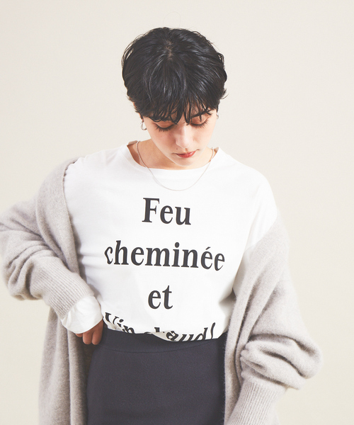 *POINT*「Feu cheminee」は暖炉の火、「Vin chaud」はホットワインという意味のロゴをプリント。 ホリデーシーズンをお家でのんびりと過ごすシーンをイメージしています。 ロゴTシャツで初めてお作りした、ヴィヴィットピンクが一押し! *DESIGN* Tシャツのボディは大き過ぎず、体のラインを拾わないサイズ感。 女性らしく華奢に見えるネックラインもポイントです。 インしてもロゴが綺麗に見えるようにプリント位置にも拘りました。 *COORDINATE* カーディガンやジャケットのインナーなど、幅広く活躍します。 ビッグロゴがスタイリングのアクセントになり、女性らしいフォントなのでメンズライクにならずおすすめです。 コットン100%でソフトな肌あたりです。 手洗い可能でシーズンレスで活躍します。 洗濯:手洗い可