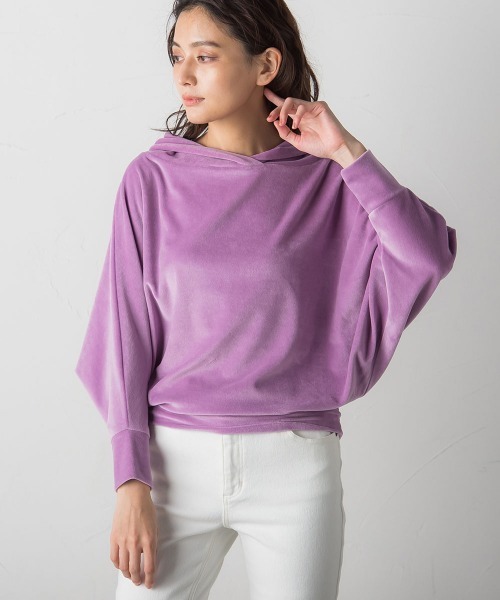 フーディ見えのカジュアルさと,女性らしい着こなしが叶う人気の抜け衿プルオーバーがベロア素材で登場。 裾の切り替えにより、自然とブラウジングできるのでスタイルアップが可能。 うなじが美しく見えるように天巾を広げ、袖はドルマンスリーブに。 くたっと感とルーズ感が逆に女性らしい1枚。 【素材の特徴】 もたつきにくい薄手のベロアカットソーを使用。 毛足の短いマットなベロアが品よく見せてくれる。 ---------------------------------- 洗濯方法 家庭洗濯:液温は40℃を限度とし、洗濯機で弱い洗濯ができる。 自然乾燥:吊り干しがよい。 アイロン:底面温度150℃を限度としてアイロン仕上げができる。 ドライクリーニング:石油系溶剤による弱いドライクリーニングができる。 ---------------------------------- ■モデル身長 165cm/着用サイズ M ※画像の商品はサンプルとなりますので実際の商品と仕様、加工、サイズが若干異なる場合がございます。 ※お客様のモニター環境により実際のお色と多少異なる場合がございます。 ※撮影状況や光の当たり具合により、色合いが異なって見える場合がございます。