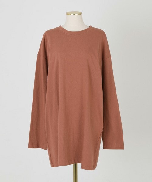 毎日着て頻繁に購入しても、いくらでも必要な基本Tシャツ。 ヒップを覆うくらいの丈感のスウェットTシャツ、アウターが多いこのシーズンは特に細部までデザインにこだわったレイヤード用や アウターの中に軽く着られるTシャツが必要ですが、 これは少しコーティングされたように感じる、シルキーな生地のタッチ感が素敵です。 伸縮性もあり、しっかり伸びる方がむしろレイヤード用で 着用してもラインがひびいたりしません。