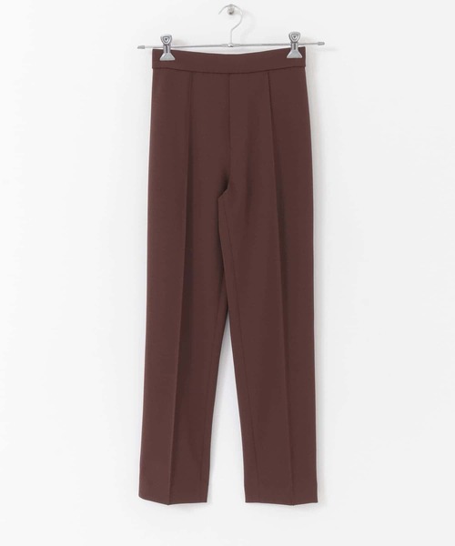 【シャープな印象に仕上がる、リラクシーなペンシルパンツ】 ジョーゼットのジャージー素材を使用したペンシルパンツ。裾に向かって細くなるシルエットとセンターピンタックが、スタイルアップ効果をもたらします。後ろゴムと柔らかなジャージー素材でイージーな着用感ながら、ゴム部分にギャザーが寄りすぎないよう見え感にもこだわった美脚パンツ。きちんと感のある見た目からは想像できない、ストレスフリーな1枚です。 POINT ・美脚見えのペンシルシルエット ・ジャージー素材でストレスフリーな履き心地 ・コーディネートに馴染む落ち着いたカラー展開 COORDINATE ゆったりしたニットやトップスに合わせて◎足元はヒールはもちろん、フラットでもバランスよく着られる万能パンツです。 ※商品画像は、光の当たり具合やパソコンなどの閲覧環境により、実際の色味と異なって見える場合がございます。予めご了承ください。 ※商品の色味の目安は、商品単体の画像をご参照ください。 ▼お気に入り登録のおすすめ▼ お気に入り登録商品は、マイページにて現在の価格情報や在庫状況の確認が可能です。 お買い物リストの管理に是非ご利用下さい。 ----------------------------- 透け感:なし 伸縮性:ややあり 裏地:なし 光沢:なし ポケット:なし -----------------------------