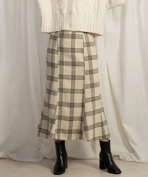 トレンドのマーメイドスカートを暖かみのある起毛チェック生地で仕上げた、この冬イチオシのオリジナルスカートが登場。 バックはレースアップをあしらい、 ニットやトップスをインした時もポイントに。 ハイウエストのデザインがスタイルアップをかなえてくれます。 ハイネックパフスリニットとのコーディネートがイチオシです。
