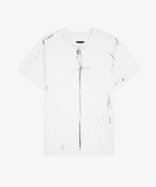 ジャージー Tシャツ カラー:ホワイト。 フロントとバックには、ブラックのトロンプルイユ エフェクト GIVENCHY PARISプリント。 オーバーサイズフィット。 液温は30℃を限度とし、洗濯機で弱い洗濯ができます。 底面温度110℃以下で(例:低温)アイロンがけができます。 タンブル乾燥禁止。 漂白処理はできないです。 ドライクリーニング禁止。