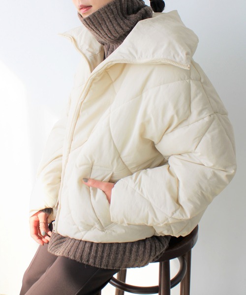 羽織るだけであたたか! ボリューム感がかわいい中わたジャケットコート 〇今年らしいダイヤキルトデザイン 〇ふっくらとした中わた入りで、軽く暖か 〇気分次第で印象を変えられるスタンドネックデザイン ■デザイン ボリューム感のある中わたブルゾン。 ゆるっとしたサイズ感と丸みのあるシルエットがこなれ感を演出。 大きめのダイヤキルトが周りと差をつけるデザインです。 スタンドネックだから、ファスナーを全て閉じれば首元まであたたか! おしゃれと防寒対策を両立できる、1着は欲しいベーシックアイテムです。 ■素材 表地は光沢感のない、サラリとした生地。 ふっくらとした中わた入りだから、軽くてあたたか。 …………………… 透け感:なし 厚さ:普通 伸縮性:なし 裏地:あり …………………… ■コーディネート ベーシックデザインの中わたブルゾンは、様々な装いにマッチ。タウンユースにピッタリです。 ボリューム感のあるシルエットだから、タイトめスカートやスリムなパンツ合わせのスタイルがおすすめ。 カラーパンツやフレアーパンツと合わせると、トレンド感が高まります。 肩を落として着ると自然と抜け感がでて、こなれた印象に。 洗濯:ドライクリーニング -------------------------------------------------------------- ※サイズ寸法は実際の寸法と多少の誤差がある場合が ございます。 ※ご覧いただいているPC/WEB環境や撮影環境により、 多少色味が異なって見える場合がございます。 【お買い物をよりお楽しみいただく為に】 ▼商品のお気に入り登録をおすすめします♪ 『♡をクリック!』 完売カラーの再入荷やラスト1点の追加、 セールの際の通知を受ける事ができます。 ブランドのお気に入り登録もご一緒にお願い致します。 --------------------------------------------------------------
