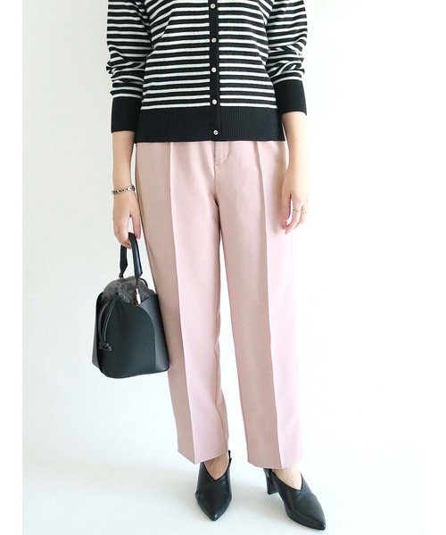 センターシームがきちんと感をプラスし、綺麗めな印象に導くパンツ。 ハイウエストデザインで脚長バランスをメイク。ウエストは後ろのみゴムを配しているので安心感があり、穿き心地も快適◎ デイリーからオフィススタイルにと、オンオフ問わずに活躍してくれるアイテムです。