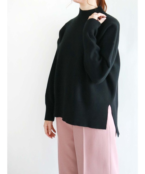 スタンドネックが上品で大人な印象を与えるニット。 スリット入りの前後差ヘムラインが、スタイリングにこなれ感を演出。締め付け感のないシルエットで着心地も快適です。 シンプルな無地タイプで着回し力も高く、ワードローブの定番アイテムとしても重宝しそう。