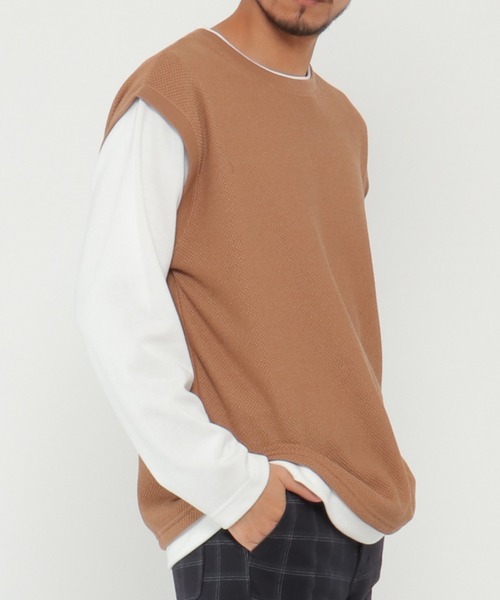 裏起毛仕様!冬バージョンのこだわりフェイクTこれ1枚でレヤードスタイルを叶えるデザインプルオーバー。身頃に凹凸感・ハリ感のある裏起毛のワッフル素材を使用しました。袖にはポンチ素材を使用しているため、スウェットにベストを重ね着したように見えるデザインです。【素材】ベスト部分は暖かい裏起毛ワッフルを使用しました。袖部分はポンチ素材です。★《お気に入り登録》でお得な情報がいっぱい★・「商品のお気に入り登録」で再入荷通知や、ラスト1点の通知、セール通知も受け取ることができます。・「ブランドのお気に入り登録」で新商品や再入荷など、お得な情報を受け取ることができます!※ご覧のモニター環境により、画像の色味と多少異なる場合がございます。※他のキャンペーンにより、期間中に価格が変動する場合があります。※セールは予告なく終了させていただく場合もあります。