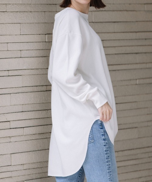 Munich(ミューニック)ストレッチサーマルバックヘンリーネックロングプルオーバーありそうでないストレッチ入りのサーマルが登場です!大人気のサーマルにポリウレタンを入れることで、ハリ感と肉感、キックバック(伸びに対しての戻り)も良くなるので、通常のサーマルに比べてワンランク上の印象に仕上がっている素材です。ポリウレタン入りの程よい肉感でテンションがある素材は、型崩れもなく立ち上がりから長く着られるシーズレスアイテム。Munichで継続的に展開していたストレッチサーマルプルオーバー(ブランド品番:MN191U01)と同デザインのロングプルオーバーです。長めだった丈を見直し、着丈を3cm短くして着やすいデザインに修正しています。シックな着こなしを楽しめる後ろヘンリーネックが特徴的で着丈の長いデザインのプルオーバーです。身幅はやや横広で、着丈もヒップが隠れるくらいの大きすぎないビッグシルエットと、センターバックに開きを作ることで出来る抜け感が今年っぽいアイテムです。衿ぐりとセンターバックは同色のテレコを使い、衿端、センターバック端、裾はオーバーロック始末にする事で軽さとカジュアルな雰囲気に仕上げました。真夏の暑い時期以外は着用できるので、1枚で着用してもきまります。また、ニット・スウェットなどのインナーとして裾見せのレイヤードコーディネートなど、着回しが効く3シーズン対応アイテムです。後ネック部分のボタンは2つくらい開けて、すっきりとしたシルエットのボトム合わせがおすすめです。※洗濯機使用可【お買いものをお楽しみいただく為に】★商品のお気に入り登録完売カラーの再入荷通知や、ラスト1点の通知、セールの通知も受け取ることができます。★ブランドのお気に入り登録新商品や再入荷など、いち早くブランドのお得な情報を受け取ることができます。【Munich / ミューニック】「大人の女性のカジュアル」をキーワードに、女性が可愛らしく、HAPPYな気分になれるような服作りがブランドのテーマ。ベーシックでシンンプルだけど、さりげなく主張のあるデザインが特徴のMunich。トレンド感や素材、サイジングやディティールがバランスよく調和しています。■お使いのパソコンのモニターによって、実物商品とカラーが異なって見える場合があります。誠に申し訳ございませんが、ご理解下さいます様お願いいたします。■当ショップの在庫数は 直営店舗の商品も含まれています。在庫数が日々変動する為、ご注文頂いた時点で在庫が完売になっている場合がございます。 ■サイズ表は、製品の生地や織りなどの特性により、多少の誤差はございます。予めご了承ください。 ■初期不良以外の返品・交換は出来兼ねます。ご了承下さいませ。