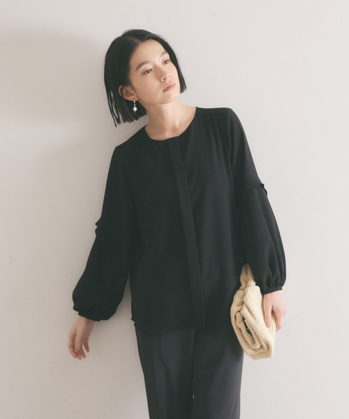 *Detail*ベーシックなデザインに袖のボリュームがワンポイントのブラウスが登場!光によって光沢感が出るので、通勤にはもちろんパーティーなどにもお使いいただけます。バックにはタックも入っているので、よりすっきりした仕上がりになっています。*Coordinate*袖にボリュームがあるので、パンツはテーパードパンツでよりブラウスが着映えするコーディネートがおすすめです。ロングスカートを合わせていただければ、休日にも着ていただけます。マルチにお使いいただける一品です。