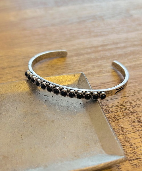 ブルーのストーンが付いたシルバーバングルです。シルバー部分にはインディアン模様が施された細かいディテールまでこだわって作られたアイテムになります。 メンズ・レディース問わずご着用いただけます。