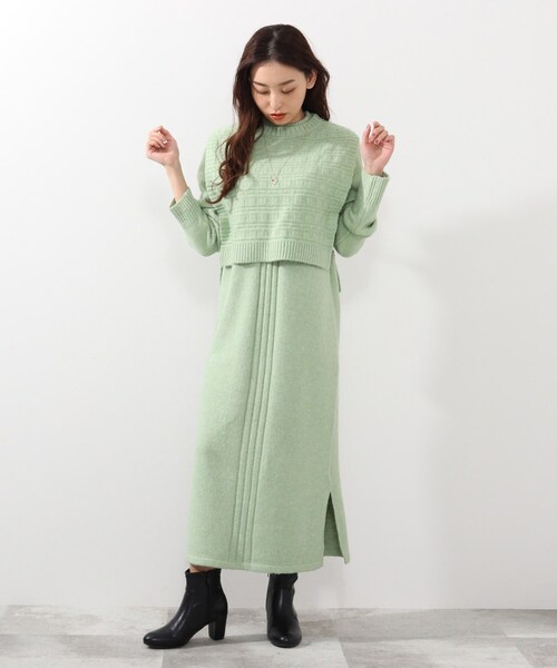 【デザイン】 ベストとワンピースがセットになったおすすめアイテムです。 ニットベストはサイドベルトになっており、インナーのボリュームを選ばず合わせられるデザインになっています。 ハイネックタイプのワンピースはシンプルなルックスが大人っぽいデザイン。 落ち着いた雰囲気のマキシ丈で上品に着こなして頂けます。 ベスト・ワンピースそれぞれ単品コーディネイトが出来るお得なSETアイテムになります。 ※ポケットなし 【生地感】 メランジ調のニュアンスのあるニットは、ふっくらとした肉感で柔らかな肌当たりです。 ※裏地なし 【スタッフ着用コメント】 "大人かわいい ”こんなニットワンピースを探していました! このセットワンピースだけでさらっと着てみたら、、、 トレンドのレイヤードスタイルなので、これだけで大人かわいくなれました^ ^ ワンピースはスリットが入っているので、スカートをレイヤードしても◎ ベストとワンピース、それぞれ別に着られるのでコーデの幅が広がりますよ。 モデル情報:身長160cm B83 W58 H79 着用サイズ:02(M) 店舗へのお問い合わせ商品番号:741-53025 ●製品寸法: 02(M):ベスト着丈44cm ベストB82cm ベスト肩幅41cm ワンピース着丈114cm ワンピースB100cm ワンピース袖丈60cm ワンピース肩幅39cm ワンピースW98cm ワンピースH100cm 03(L):ベスト着丈47cm ベストB84cm ベスト肩幅43cm ワンピース着丈114cm ワンピースB102cm ワンピース袖丈60cm ワンピース肩幅39cm ワンピースW100cm ワンピースH102cm 備考: