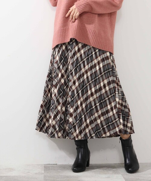 【デザイン】チェック柄2色、無地2色のカラー展開をご用意したプリーツスカートです。たっぷりと施したアコーディオンプリーツが印象的な上品なアイテム。ウエストは総ゴム仕様なので楽に穿いていただけます。※裏地あり※ポケットなし【生地感】無地は表面が滑らかでやわらかく、チェック柄は温かみのあるやわらかな素材です。【スタッフ着用コメント】上品で落ち着いたチェック柄は大人な雰囲気を出してくれます。しっかりキレイに入っているプリーツ加工がキチンと感も演出します。ウエストゴムでとても楽に着られるのと、お洗濯もできるので、持っていて損のない1枚です。無地の2色は行事ごとにも使えそうですね^ ^モデル情報:身長160cm B83 W58 H79 着用サイズ:02(M)店舗へのお問い合わせ商品番号:741-73022●製品寸法:02(M):W64~78cm H94cm 総丈80cm03(L):W66~80cm H96cm 総丈83cm備考: