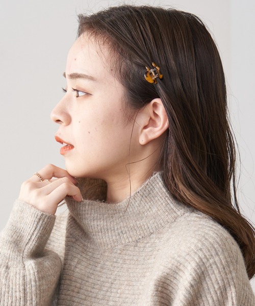 さりげなくコーデを彩るチビヘアクリップ。 前髪が長めの方はジグザグと前髪をセンターで分けて、 後方へとくるくるねじってクリップで固定。 前髪が短めの方はサイドの髪をくるくるとねじって留めるのも◎ その際シースルーバングになるように髪をまとめると より今っぽさが出るのでおすすめです。 ミニクリップなので髪の長さに左右されず使用出来るのが嬉しいポイント。 ▼お気に入り登録のおすすめ 【気になるアイテムを登録】 ハートをクリックしてお気に入りに登録すると 完売カラーの再入荷やラスト1点の通知、セールの通知を受けとることができます。 【ブランドを登録】 新商品や再入荷、セール通知など、いち早くブランドの情報を受けとることができます。 是非ご利用頂き、お買い物をお楽しみ下さい。 ▼商品について ・サイト上のカラー名と、お届け商品に記載されているカラー名が異なる場合がございます。 ・商品の色味は、撮影場所や光のあたり具合などにより色味が違って見える場合がございます 。 また、お客様のお使いのPCのモニター環境などにより色味が違って見える場合がございます。 予めご了承の上ご注文下さい。 ▼返品・キャンセルについて ・着用、洗濯後の返品、交換は致かねます。 ・商品到着後、着用前に商品を確認して頂きますようお願い致します。 ※画像の商品はサンプルです。実際の商品と仕様、加工、サイズ、素材が若干異なる場合がございます。
