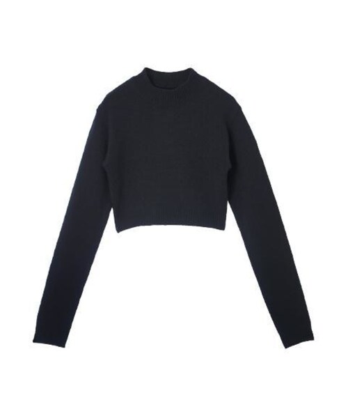 ハイゲージの少しタートルになるタイトなショートニットTOPSです。着回しが抜群なので何枚持っていても使える万能なニットになります。重くなりがちな冬のコーデもショート丈でバランス良くスタイリングできる1枚です。