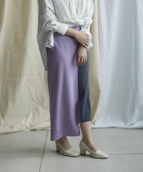 mona Belinda 2021SS 『こびない女性を語るデザイン』 【デザイン】 ・スリット使いとシルエットがメリハリの効いたレディな一枚に。 ・アシンメトリーのデザインがさりげない遊びゴコロにをプラス。 ・パキっとした配色がこびない女性らしさを演出。 ・ポンチ素材なのでキレイめになり過ぎず、 カジュアルスタイルにも。 ・伸縮性のある生地なので着心地もバツグン。 【オススメコーディネート】 シルエットがややタイトなのでゆったり したトップス合わせで メリハリの効いたスタイルがオススメ。 【スタッフコメント】 165㎝/普通 サイズ感:ややタイトですが伸縮性のある 素材なので動きやすいです! ポンチ素材なので幅広いスタイルを楽しめます。 着心地:ウエスト周りや腰周りは楽に着て頂けます。 足元にスリットがあるので背が低めの方でも 合わせやすいと思います! ------------------------------------------------------------- *気になるアイテムは《お気に入り登録》がオススメ! 入荷情報やセール情報が通知されるようになります。 「ブランドお気に入り登録」で新商品や再入荷など、 お得な情報を受け取ることができます。 ※画像は光の具合で色味が違って見える場合があります。 --------------------------------------------------------------