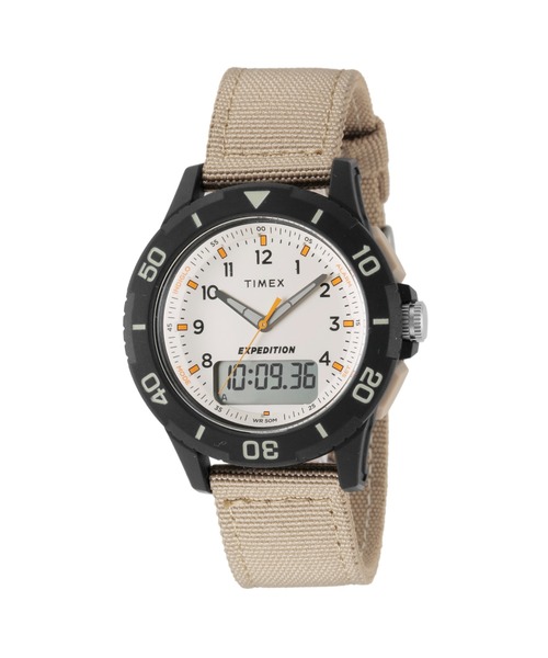 TIMEX タイメックスは1854年創業、世界でも限られた自社でムーブメントやケースなどを含め製造し続けている、正真正銘の時計ブランドです。現在160年以上の歴史を持ち、世界80ヶ国以上で製造工場とオフィスを展開するタイメックス社は、これからも革新的でスタイリッシュ、タフでユニークな時計をリーズナブルな価格で提供し続けていきます。 KatmaiCombo/カトマイ・コンボ 新しくも懐かしい、デジアナも約10年振りの登場。デジタル搭載でアラームなど実用的な機能を付加しつつ、ファッション的に合わせもしやすい。 Spec 文字盤カラー:ベージュ 防水機能:5気圧防水 駆動方式:クォーツ 保証:保証年数1年(自然故障保証) モニター電池使用のため、受け取り時に電池が切れている可能性がございます。 保証期間内かつ初回の電池切れに対しては、1回目のみ無償交換をさせていただきます。 保証期間が経過している場合は、有償での対応になりますので、予めご了承ください。 --------------------------------------------------------- お気に入り登録のオススメ ▼商品のお気に入り登録 再入荷、残り1点、セールなどの通知を受け取ることができます。 ▼ブランドのお気に入り登録 新商品や再入荷など、いち早くブランドの情報を受け取ることができます。 ---------------------------------------------------------