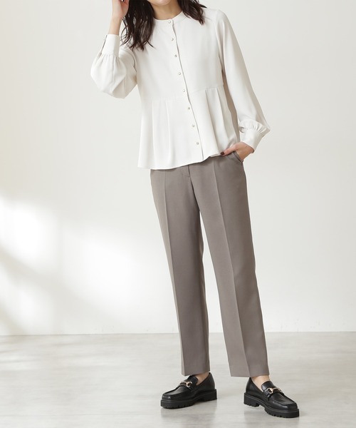 大人な雰囲気でデイリーに使えるテーパードパンツ。裾にかけて細くなるテーパードラインに、センタープレスでレッグラインを上品に見せてくれるデザインです。無駄のないディテール、ウエスト周りをすっきり見せてくれるデザインでインスタイルもフェミニンな雰囲気に。ブラウス、シャツ、ニットにも様々なスタイルを綺麗めに演出します。