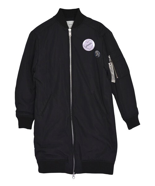 秋冬の定番アウターのMA-1コートがロング丈で登場。今年はロングアウターが旬です。※缶バッジはコーディネート使用です。セットではございません。