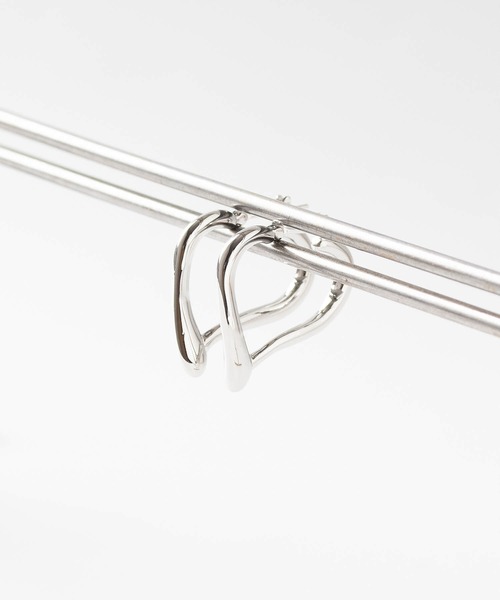 ハートフォルムのフープピアスです。左右で線の太さとカーブの丸みを変えながらエンドで重なり合うように繋げたシルエットです。ゆるやかな抜けのあるハートラインがポイントで、横から見て楽しいデザインです。ゴールド、シルバーの2色展開です。※左右で大きさ、フォルムがやや異なります。また加工上、細かい傷や気泡が見られる場合がございます。予めご了承の上ご注文ください。
