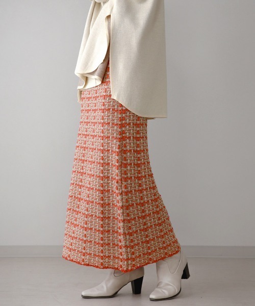 【オンライン限定アイテム】 ニットツイードが目を引くIラインシルエット ■POINT 多色使いの織り柄は、これだけで存在感抜群 少しカーブさせたウエストラインですっきりもたつかず大人の上品さを演出 ■FABRIC スラブ糸と組み合わせることでぽこぽことしたツイード特有の温かみのある表面感に やわらかいニット素材なので伸びもよく、着心地◎ ■COORDINATE Iラインのシルエットが魅力のスカートは、体のラインを拾いすぎることなくスタイルアップも叶う一枚。 ウエストはゴム仕様で着脱しやすくなっております。 同素材のベストと合わせてセットアップで着用もオススメ。 ………………… 透け感:なし 裏地:なし ………………… ★商品のお気に入り登録 登録すると、完売しても再入荷時に通知を受け取ることができます。 ほかにもお得な特典があるかもしれません♪ ★ブランドのお気に入り登録 新商品や再入荷などの情報を受け取ることができますので、是非ご登録ください♪