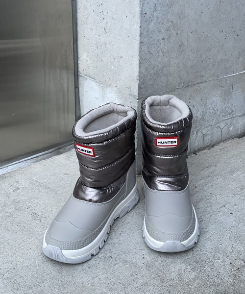 冬の暗くなりがちなコーデにメタリックを取り入れることで、華やかな雰囲気に!●デザイン●フリース仕立ての裏地やメタリックナイロンアッパー、ハイドロガードコーティング、革新的なオーソライトフットベッドでハンドクラフトのデザインです。履き心地も良く、-22℃の極寒でも対応できるので自然な暖かさをキープできます。軽量なうえ、足を暖かくキープするためにビーガンフリースを採用しています。速乾性&お手入れがスムーズなのも魅力。●サイズ●UK4=23cm相当 筒周り36.8cm 筒丈 17.1cm ヒール高4.5cmUK5=24cm相当 筒周り38.0cm 筒丈 17.5cm ヒール高4.5cm●素材●表地:100%キルティングナイロンアッパー素材:100%成形TPUアウトソール素材:100%ラバー、100%EVA裏地:100%ポリエステル【HUNTER(ハンター)】1956年に発表された、ハンターで最も歴史の長いブーツの1つ、オリジナル・グリーン・ウェリントン・ブーツは、足の健康に考虔した靴型に基づき、抜群な快適さとフィット感を追及して特別なデザインを施した。このスタイルは、後にハンターを代表するブランドのシンボリックデザイン「オリジナル・ブーツ」として名を馳せた。現在のハンターブーツも、当時と同じ靴型と28個およぶパーツを用いて、今日でも手作業で作り続けられている。ハンターのラバーブーツは、フットウェアとしての質の高さに定評があり、1977年にはエジンバラ公から、続く1986年にはエリザベス女王によって最高品質の証でもあるロイヤルワラント【英国王室御用達】の認証を受授した。--------------------------------------------------------------------------------【注意点】※画像の商品は光の照射や角度、お使いのモニター環境により、 実物と色味が異なる場合がございます。あらかじめご了承下さいませ。--------------------------------------------------------------------------------【『♡』をクリックでお気に入り登録】・ラスト1点や再入荷の通知が届きます。 --------------------------------------------------------------------------------