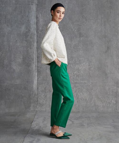 発色の美しいグリーンカラーが目を惹くパンツ さらりとした素材感が爽やかな印象を後押しします。 ■デザイン 細身のベーシックなテーパードパンツ。 センタープレスが足元をクリーンな印象に仕上げます。 ■素材 程よい張りのある平織りのウール素材を使用。 鮮やかで美しいグリーンカラーがアクセントになる1枚です。 【注意事項】 ※商品を使用前に、タグ等に記載されている「取り扱い上の注意書き」、「洗濯表示」を必ずご確認ください。 ※商品画像は、光の当たり具合やパソコンなどの閲覧環境により、実際の色味と異なって見える場合がございます。予めご了承ください。 ※商品の色味の目安は、商品単体の画像をご参照ください。 店舗へお問い合わせの際は、全国のDrawer各店舗まで下記の品名/品番をお申し付け下さい。 品名:D RT1 WO FRESC BASIC PTS 品番:6514-236-1187