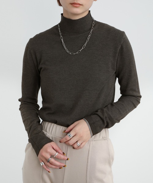 -point- & -styling- 首元もあたたかく包み込んでくれる着回し力抜群のハイネックのニットソーの登場! 程よくボディにフィットするサイズ感で一見女性らしい雰囲気のアイテムですが、袖丈がやや長めなのでカジュアルに着こなせるアイテムです。 伸縮性のある滑らかな肌触りの質感で心地よい着心地◎ 1枚でももちろん、レイヤードスタイルのインナーとしても活躍できるのでデイリーユース間違いなしです。 ボリュームニットやシャツとのレイヤードスタイルがおすすめです。 ベーシックシンプルレイヤードニットソー ---------------------------- 素材 レーヨン50%・ポリエステル28%・ナイロン22% ---------------------------- 伸縮性 ★★☆☆☆ 裏地 なし ---------------------------- ※モニター・環境等により実際の商品と多少色味が異なって表示される場合がございます。 予めご了承をお願いいたします。 【お買いものをお楽しみいただく為に!】 ▼商品のお気に入り登録 完売カラーの再入荷通知や、ラスト1点の通知、セールの通知も受け取ることができます。 ▼ブランドのお気に入り登録 新商品や再入荷など、いち早くブランドのお得な情報を受け取ることができます!