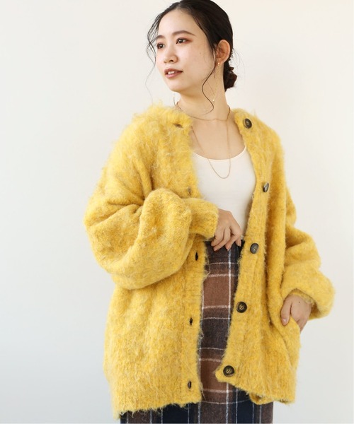 【2021AW】 Simplicite 冬ムードを加速させるボリュームカーディガンが登場! 毛足のあるシャギー糸を編んで厚みをもたらせた、ニットコート感覚で着られるカーディガンです。 大きなボタンもポイントになりデザインが効いています。 暗くなりがちな冬の装いに、イエローやブルーのきれいな色目がおすすめです♪ *カラー:ブラウン(020)はくすみ感のあるベージュ~グレー寄りのお色味です。 ********************** 透け感:なし 裏地:なし 伸縮性:ややあり 光沢感:なし 生地の厚さ:普通 ********************** 【スタッフ着用コメント】 《スタッフ staff.s》 身長:165cm/普段サイズ:S~M/着用サイズ:フリーサイズ サイズ感:チュニック丈で身幅や肩周りもゆったりしています。高身長の私でもゆるっときられるサイズ感でしたが、低身長のスタッフが着ても着られている感が出にくく、 ほど良いゆるさが可愛かったです。 素材感:毛足の長いふわふわとした、ウォーム感のある素材。見た目とは違って、とても軽い生地感です。 着心地:ゆるっとしたサイズ感と軽い生地感で、旅行や休日に着たくなる一枚でした。 ********************** ※取り扱いについては、商品についている品質表示でご確認ください。・洗濯 本体:ドライクリーニング ・この製品はなめらかな風合いが特徴ですが、表面の毛羽が他のものに付着することがあります。 ・この製品は色あせしますので、光の当たらない場所で乾かしたり、保管してください。 ・特性上、摩擦や静電気によって毛が絡み合ったり、毛乱がです場合があります。 ・摩擦や引っ掛けに気を付けてください。 ・衣料用ブラシなどで毛羽を整えてください。 ※店頭・屋外での撮影画像は、光の当たり具合で色味が違っ