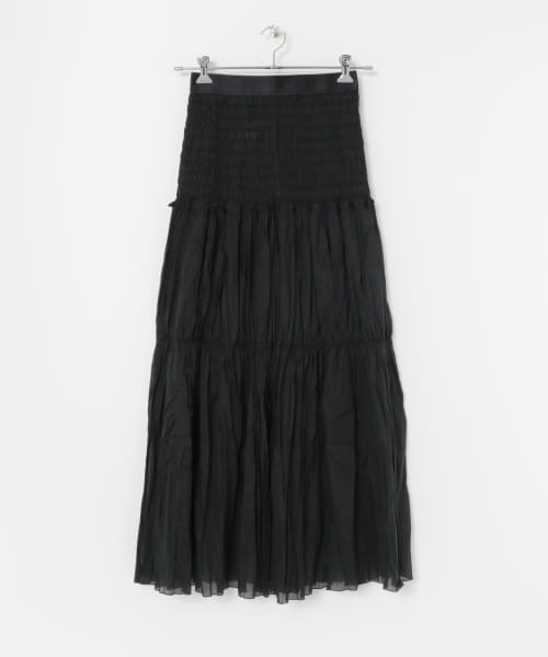【可愛いが詰まった"iI"の新作シャーリングスカート】ウエスト部分のシャーリングがポイント。トップスをインしていただいてもおさまりがとてもいいです。段のあるスカートって甘くなりすぎてしまうイメージがありますが、 このスカートはシワ加工を施しているので、ボリュームも抑えられて、甘さも程よく控え目です。 少し透け感があり、柔らかい素材感なので、落ち感もある分、ぐっと落ち着いた印象に。同素材のトップスとセットアップで着ていただくと、ワンピースのようなイメージに。特別に製作したブランドロゴ入りのオリジナル巾着にいれてお届け致します。こちらの製品はシワ加工が施されています。ある程度の持続性はありますが、永久的なものではありません。着用や洗濯を繰り返すうちに加工が薄くなっていきます。捩ってくるっとくくった状態で保管していただくと、シワも復活します。【iI / アイ】レディースバイヤーの森口のコミュニティーから生まれたブランド。iIは“自分”、“アイデンティティ”、森口の名前である“愛”から来ており、シーズンに捉われず、自分たちが今着たいもの、欲しいものを素直に形にしたラインナップとなっております。「わたしのカラーであり、あなたのカラーであってほしい。」「 体型や髪の色、肌の色、色々あるけれど、このアイテムたちがその人なりの“アイデア”になってほしい。」 「 その日、その場所、そのときの気持ちに合わせてアレンジができるものを」というコンセプトのもと、2020AWシーズンよりスタート。シーズン:2021 S/Smodel : 152cm 着用サイズ : one※商品画像は、光の当たり具合やパソコンなどの閲覧環境により、実際の色味と異なって見える場合がございます。予めご了承ください。※商品の色味の目安は、商品単体の画像をご参照ください。※シワ加工を施しているためアイロンがけは行わないでください。-----------------------------透け感:あり伸縮性:なし裏地:なし光沢:なしポケット:なし-----------------------------