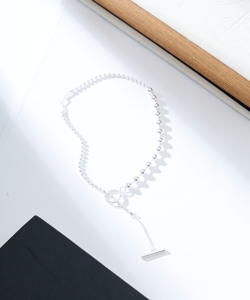 【こなれ感のあるミックスボールチェーンネックレス】留め具のないラリエットタイプのボールチェーンネックレス。大小サイズの違うボールチェーンやスクエアチェーンを組み合わせた、シンプルながらもデザイン性の高いネックレスです。リングパーツにチェーンを通すだけの着脱のラクなタイプで、スタイリングに合わせてお好みの長さや付け方にアレンジができるアイテムです。お持ちのネックレスと重ねづけするのも、コーディネートの幅が広がっておすすめです。■素材合金, 真鍮, 鉄※商品タグに記載されている商品名がWEBでの表記名と異なる場合があります。※実際の商品と仕様、加工、サイズが若干異なる場合がございます。 ※照明の関係により、実際よりもやや明るく見える場合がございます。またパソコンなどの環境により、若干製品と画像のカラーが異なる場合もございます。予めご了承くださいませ。 【お気に入り登録】してお得な情報をCHECK!!・「商品のお気に入り登録」で再入荷通知や、ラストの通知、セール通知も受け取ることができます。・「ブランドのお気に入り登録」で新商品や再入荷など、お得な情報を受け取ることができます。__________________________________________________________