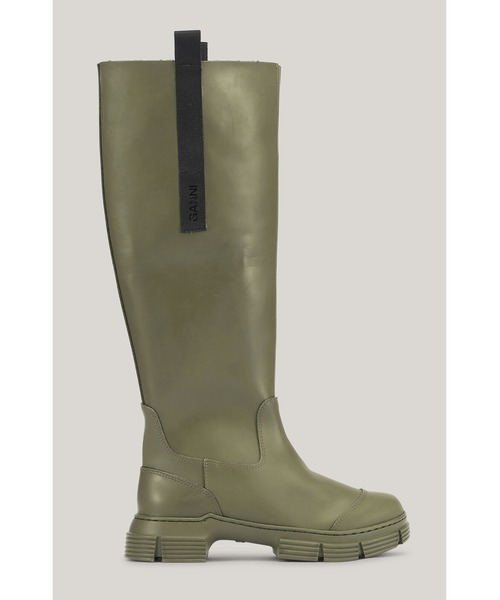 GANNIは2000年に小さなカシミアウェアの会社としてデンマークのコペンハーゲンでスタートした。2009年にDitte Reffstrup (ディッテ・レフストラップ)がクリエイティブディレクターに就任。ディッテの夫であるNicolaj Reffstrup(ニコラス・レフストラップ)がCEOとなり、本格的にウィメンズウェアブランドとしてスタート。 GANNIのアイテムの特徴は、“遊び心を効かせながらも実用的かつ機能的”。トレンドに左右されることなく、長く着られるようなベーシックなアイテムにGANNIらしい、遊び心を加えている。ソーシャルにも力を入れており、インスタグラムでは世界中のファンたちが「#GanniGirls」というハッシュタグで各々のコーデ写真を投稿している。ラバーニーブーツ。ミニ丈のボトムスにあわせたいアイテム。