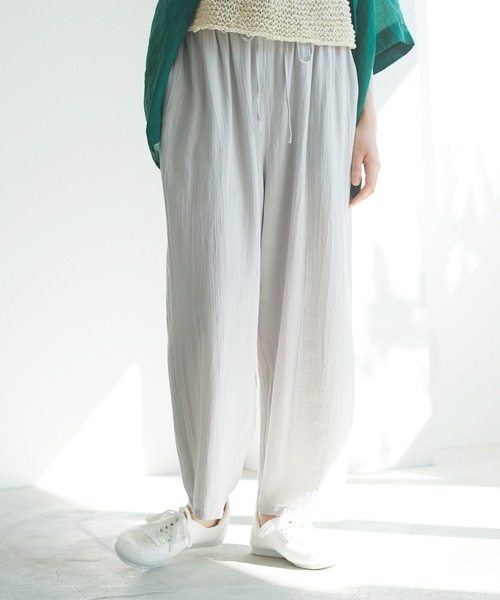 <綾ガーゼ>生地の産地は滋賀県高島地区。オーガニックの糸を1日で50m程しか織れない旧式のレピア織機でゆっくりと綾組織に織り上げました。緩いテンションで織りあがった生機をワッシャーをかけながら揉みこむことにより独特の柔らかい風合いに仕上げ、更に製品染めでニュアンスのあるペチパンツができあがりました。暑い日のレイヤードスタイルに◎洗濯:手洗い可ATTENTIONこの製品は洗濯によって多少縮む場合がありますので必ず裏返しにして押し洗いして下さい。洗濯後は、形を整えてから日陰で平干しして下さい。 素材の性質上(特に濃色の場合)、汗や雨等でぬれた際に摩擦により色落ちし、他の衣料・小物に移染する事がありますのでご注意下さい。この製品は独特の風合いを出す為、製品染めをしています。 摩擦(特に汗や雨等で濡れた状態)等で色落ちが考えられますのでご注意下さい。ひとつひとつ、 色の出方・風合い・サイズ等、微妙 に違いますが、他の製品では味わえない雰囲気をお楽しみ下さい。単独洗いをして下さい。 デリケートな素材のため、 糸引きや滑脱、破損にご注意下さい。※画像はサンプルです。実際の商品と仕様・加工・サイズ等が若干異なる場合がございます。※撮影画像は光の当たり具合やモニターの環境により色味が違って見える場合がございます。
