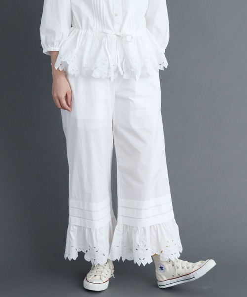 裾口に爽やかなレモンの果実と葉を刺繍を施したpeupresの春のパンツ。 一見シンプルに見えますがこだわりが詰まっています。 セットアップでも楽しんで頂けるようにブラウス(1001BL001221)もご用意しています。 ところどころ刺繍の中をカットし、表情豊かな刺繍になっています。 モノトーンの展開で、他のアイテムと合わせやすく ワンピースなどにレイヤードするバランスもおすすめです。 ※光の関係で実物の商品の色味とは若干異なる場合がございます。あらかじめご了承ください。 ※着用の商品はサンプルです。実際の商品と仕様、加工、サイズが若干異なる場合がございます。 ※取り扱いの注意については取り扱い表示をよくご確認の上、着用をお願いいたします。 peu pres(プープレ) CONCEPT 『街角の古着屋で見つけた素敵なワンピース』 手に取ったときの興奮と手に入れたときの心躍る気持ち それはとってもハッピーな出会い そのようなシーンが プープレの洋服やファブリックのコンセプト 大人のための『カワイイ』が詰まった どこか懐かしさを感じさせる洋服 プープレは『未完成の完成』 オリジナルモチーフのファブリックをメインに daily...日常 room... くつろいでいられるとき いつでもハッピーでいられるような服作り