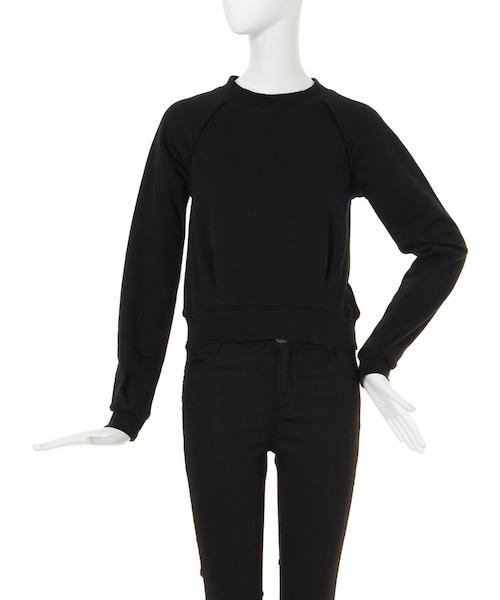 柔らかい風合いのスウェット素材を使用。シンプルなシルエットで、余計なデザインは無くコンパクトサイズが着回し利き長く使用出来るアイテムです。コンパクトなサイズ感の為、ミモレスカートやフレアショートパンツ等とのstylingがバランスが良く◎。
