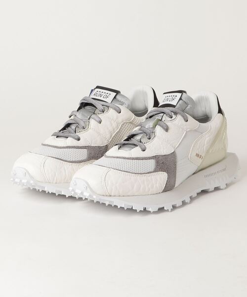 2020年1月のPITTI UOMOデビュー日本総代理店 kiryu co.,ltd100% Made in Italy, Made with Italian HeartでファッションデザイナーでもあるMatteo Ciuti(マッテオ シウッティ)があらゆる物からインスピレーションを受け様々な素材をスニーカーに落とし込み、素材と色のコンビネーションは独特で唯一、それは今までに見た事もないような芸術的な1足となっています。ファーストコレクションは、色と素材(牛ハラコ、牛ヌバック、グリッター、ナイロン、メッシュ、ラバー)の独創的なコンビネーション。ダッドスニーカー程のボリューム感はなくほど良いフォルムで、3Dソールはデザイン性だけでなく快適なフットワークを可能にしています。スポーツシューズの作りではなく、レザーシューズの作り方で生産をしている。ソールも釘打ちをしている。アウトソールはオリジナルの3Dソールで凹凸のある作りなので、新感覚な履き心地です。自然と前に足が進むような作りになっております。