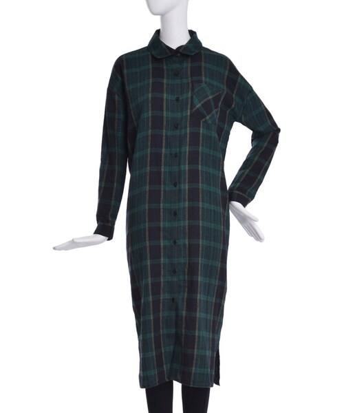 肌触りの良い柔らかいネル素材を使用。今季らしいカラー配色が秋冬感を演出。レトロ感を漂わせる幾何学のパターンもポイント。ロングアウターとのレイヤードスタイルもお勧めです。