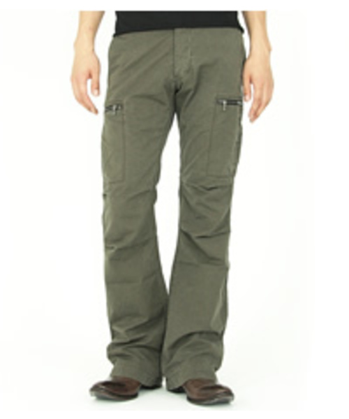 硫化染めウェザーを使用したインタックポケット仕様のフレアーカーゴパンツ。 製品洗いでムラ感を表現しています。ゆとりのあるシルエットが大人っぽい一本です。 モデル身長176cm 体重62kg モデル着用サイズ:1
