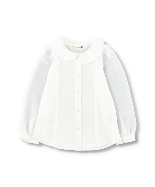 入園・入学だけでなく結婚式やお食事会、発表会など華やかなシーンを彩るブランシェスの特別な一着「キメ服」透け感のあるシフォン素材のフリル襟とふんわり袖が可愛いブラウスです。身頃部分は着心地がよく、伸縮性のある素材を使っています。ワンピースを上に着た時に袖がキレイに出るようコーディネートで設定しているのもこだわりポイント!-----<身頃>透け感:なし伸縮性:あり<袖・襟フリル>透け感:あり伸縮性:なし※モデル着用写真についてはイメージの為、実際の 商品とカラーや仕様が異なる場合がございますので、 商品画像をご覧ください。※商品の色味につきまして、お客様のお使いのPCの モニター環境により実際のカラーと画像の色味が 違って見える場合が御座います。 予めご了承の上、ご注文下さい。※店頭・外での撮影画像は光の加減で、 実際の商品より明るく見える場合が御座います。