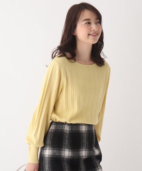 着回し力◎なラメアソートプリーツニット 【素材】 ウール混の4者混のあたたかみと落ち感が兼ね備わった、index定番の素材を使用。 程よい厚みがありながら、もたつかず、12Gで編み込まれたきれいな目面が特徴です。 【デザイン】 ボディに施されたプリーツが一枚で着映えるデザイン。 シンプルなパフスリーブデザインで柔らかにボディラインを包みつつ、 狭めに入れた肩幅で華奢見えも叶います。 シンプルなプリーツデザインなので、合わせるアイテムを選ばず、着回し力◎です。 無地のブラック(019)・ピンク(070)と 華やかなオフ×ゴールドラメ(602)/トレンドのイエロー×シルバーラメ(631)のアソート展開です。 【こだわり】 36(S)・42(LL)サイズはWEB限定サイズです。 マシーンウォッシャブル機能付き。 ※こちらの商品はやや透け感があるため、インナーの着用をおすすめします。 こちらの商品は主に冬に着用いただける商品です。 モデル情報:身長166cm B80 W58 H83 着用サイズ:38(M) 店舗へのお問い合わせ商品番号:C58-13034 ●製品寸法: 36(S):着丈54cm B88cm 袖丈57cm 肩幅32cm 38(M):着丈55cm B92cm 袖丈58cm 肩幅34cm 40(L):着丈56cm B96cm 袖丈59cm 肩幅36cm 42(LL):着丈57cm B100cm 袖丈60cm 肩幅37cm 備考: