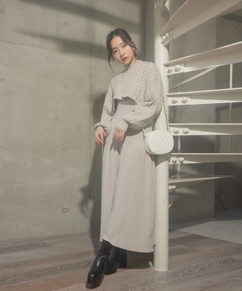 ニットワンピースとショートニットトップスがセットになったアイテム。ワンピースは着心地の良い糸を使用し、 体のラインをきれいに見せてくれます。 トップスは後ろがリボンデザインなので開きを調節できます。
