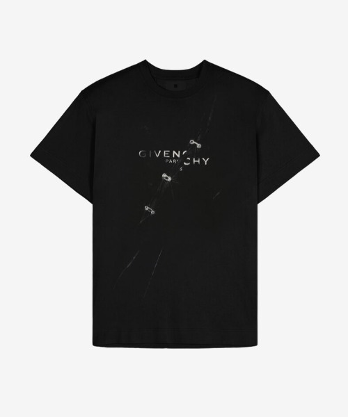 ・ジャージー Tシャツ。・トロンプルイユ エフェクトが施された、ホワイトのGIVENCHY PARISプリント。 ・オーバーサイズフィット。 ・液温は30℃を限度とし、洗濯機で弱い洗濯ができます。 ・底面温度110℃以下で(例:低温)アイロンがけができます。 ・タンブル乾燥禁止です。 ・漂白処理はできないです。 ・ドライクリーニングはできません。