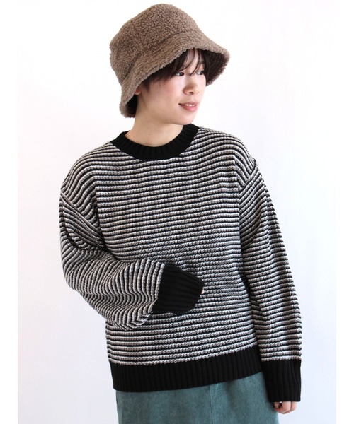 配色細ボーダーが目を惹くクラシカルなニット。幅広なリブ編み仕様がシルエットに引き締め効果を。すっきりとしたスタイリングに、華奢魅せも可能にしてくれます。存在感のあるデザインなので、シンプルなボトムスと合わせるのがおススメです。豊富なカラバリ展開も◎。