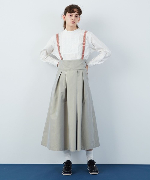 適度なハリとサラッとした肌触り、見る角度によって微かに変わる色合いが高級感を出している素材を使った肩ヒモのテープでジャンパースカートにもなる2WAYのデザインスカート。 ウエストベルトをやや太めに設定する事でクラシックな印象をつくり、大胆に取ったタックが生地のハリ感と相まってキレイなAラインを作っています。 肩のリボンベルトは大胆でポイントにもなる刺しゅうが贅沢に入っていてコーディネートのアクセントをつくっています。 ベルト自体は簡単に取り外しが出来るので、スカート単体としても着る事ができ、ウエストにヒモが入っている事でイージーに着用できる点は嬉しいポイントです。 【ブランド情報】 FRAPBOIS/フラボア 2001年にブランドスタート。 「大人げない大人の服」をコンセプトに、大人が着るリラックスしたデイリーウェアを提案するコレクションブランド。 レディースとメンズのアイテムをご用意しています。 ---------------------------------------------------------------------- 【お気に入り登録】がおすすめです。 ■商品のお気に入り登録 再入荷、残り1点、セールなどの通知を受け取ることができます。 →商品ページ ♡ をクリック ■ショップのお気に入り登録 新商品や再入荷、セール、クーポン配布、ショップニュースなど、いち早くショップの情報を受け取ることができます。 →「♡お気に入りショップに追加」 をクリック ----------------------------------------------------------------------
