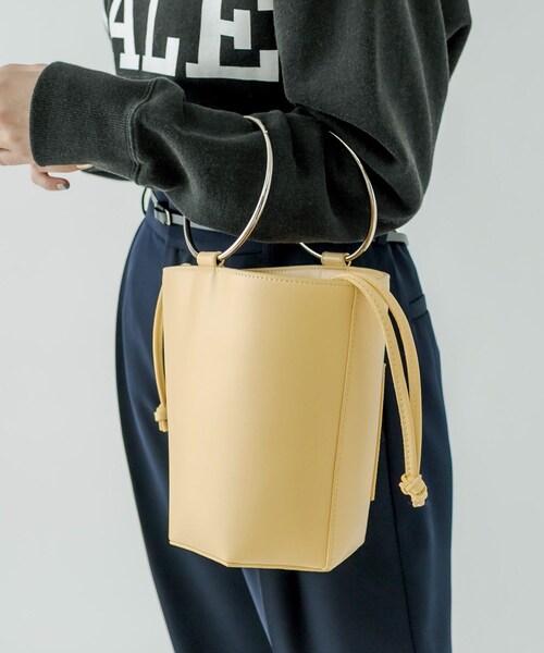 お出かけに最適なバケツ型バッグが登場!商品ポイント・大きなリングハンドルが目を惹くバケツ型バッグ!・手持ち、ショルダーと2WAYでお使いいただけます。・外側と内側にもポケットがついており機能性も抜群◎・ステッチデザインがポイントのブラックと鮮やかなイエローの2色展開。スタイリングポイント・シンプルなスタイリングのポイント使いにぴったり◎・シルバーのリングハンドルはスッキリとした印象に決まります!------------------------------------------------------商品のお気に入り登録➡ お気に入りアイテムの値下げ・再入荷・在庫1点などの通知を受け取ることができます。ブランドのお気に入り登録➡ 新商品や再入荷、セール、クーポン配布などお得な情報を受け取ることができます。※サイト上のカラー名と、お届け商品に記載されているカラー名が異なる場合がございます。※商品の色味は、撮影場所や光のあたり具合などにより色味が違って見える場合が御座います 。また、お客様のお使いのPCのモニター環境などにより色味が違って見える場合が御座います。予めご了承の上ご注文下さい。※ご注文いただいた予約商品のお届け時期の確認は、注文履歴ページより行えます。------------------------------------------------------'