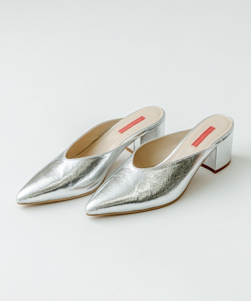 新鮮さをプラスしてくれる春に大注目のミュールが登場!商品ポイント・とんがりのあるつま先デザインはスタイリングのポイントに。・表面感のある素材感は女性らしい印象に◎・太めのヒールなので安定感も抜群!・ベーシックなカラーと新鮮見えするシルバーのカラー展開!スタイリングポイント・パンツスタイルとの相性抜群!女性らしさをプラスしてくれます。・寒い時期はタイツや靴下を合わせて履いて頂くのもオススメです!アテンション・この製品は、摩擦(特に湿った状態での摩擦)や雨・汗などで他の衣料等の周りものに色移りすることがありますので、十分ご注意ください。・素材の特性上、時間の経過と共に劣化、剥奪、べたつきが発生することがあります。・摩擦で剥奪や光沢が消失することがあるのでご注意ください。・高温多湿を避け、風通しのいい光の当たらない場所で保管してください。------------------------------------------------------商品のお気に入り登録➡ お気に入りアイテムの値下げ・再入荷・在庫1点などの通知を受け取ることができます。ブランドのお気に入り登録➡ 新商品や再入荷、セール、クーポン配布などお得な情報を受け取ることができます。※サイト上のカラー名と、お届け商品に記載されているカラー名が異なる場合がございます。※商品の色味は、撮影場所や光のあたり具合などにより色味が違って見える場合が御座います 。また、お客様のお使いのPCのモニター環境などにより色味が違って見える場合が御座います。予めご了承の上ご注文下さい。※ご注文いただいた予約商品のお届け時期の確認は、注文履歴ページより行えます。------------------------------------------------------'