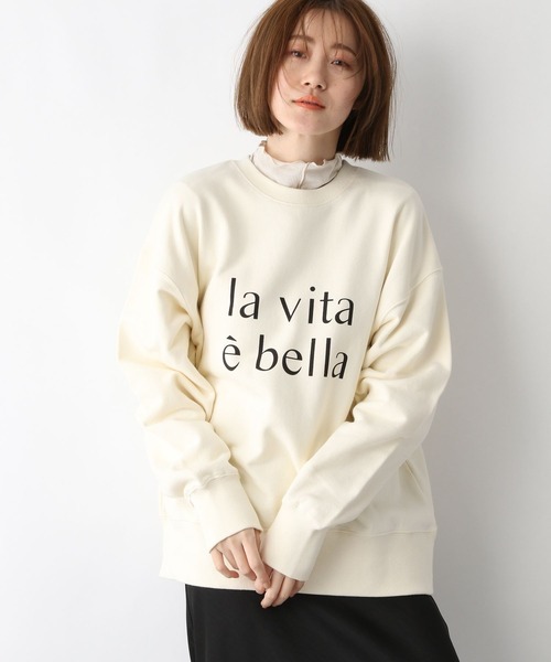 ーーーカジュアルだけど大人っぽいカレッジ風のロゴがポイントのプルオーバー。ーーー【デザインと特徴】袖にすこしギャザーを寄せて女性らしさもプラスした、程よいルーズさの スウェットに、フランス語でカレッジ風のロゴをプリントのプルオーバーです。アイテムによってロゴのカラーを変えております。 裾に余裕がでる締め付けのないサイズ感なので、スカートとのバランスも 取りやすいデザインに仕上げました。 ロゴをみせる肩掛けも上品に仕上がります◎ 【素材特徴】毛羽が少なくきれいな面でありつつ、 カジュアル感もあるしっかりめの裏毛を使用しました。 程よい張り感があり、大人の方もぴったりです。 【洗濯可否】洗濯機での処理が行えます。【スタイリング】スリットパンツを合わせてクラシカルなスタイリングの外しに◎マニッシュな小物合わせが映えておすすめです。